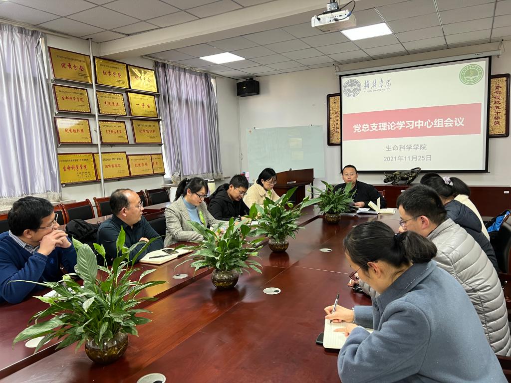 11月25日下午,生科公司党总支理论学习中心组召开会议,集体学习党的十九届六中全会精神。党总支书记董建刚主持会议并讲话,党总支理论学习中心组成员参加。