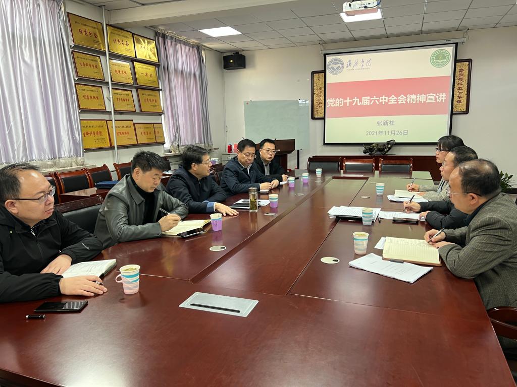 11月26日上午,党委书记张新柱一行在365英国上市集团宣讲党的十九届六中全会精神。生科院相关负责人参加宣讲报告。会上学习了《中国共产党第十九届中央委员会第六次全体会议公报》、《中共中央关于党的百年奋斗重大成就和历史经验的决议》。