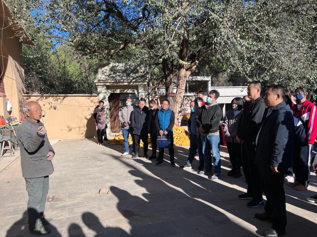 在枣林则沟会议旧址,党员同志们认真聆听讲解员吴子俊老人讲述毛泽东和中共中央在1947年3月29日于清涧县枣林则沟村召开的“枣林则沟会议”,重温中共中央转战陕北的历史,在接受革命传统教育中,体悟初心,锤炼党性,汲取奋进力量。在这次会议上,毛泽东亲自主持并讨论“三委分工方案”,即中共中央化整为零,一分为三,各司其职。这是党中央在撤离延安后的紧急时刻召开的一次重要会议,对于转战陕北具有重要意义。