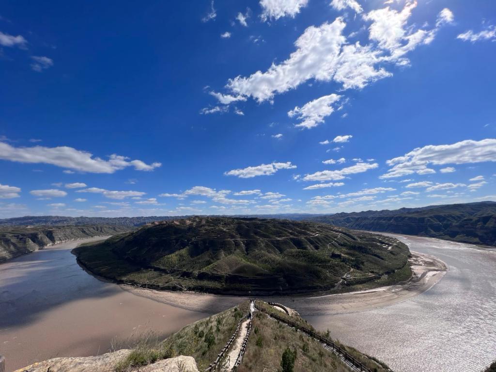 在清涧县太极湾,水土保持与荒漠化防治专业教研室主任张宁宁说“榆林地处黄河流域中游腹地,境内黄河干流全长约389公里,全市注入黄河的支流有17条,各级支流的生态治理与黄河流域生态文明建设紧密相关。”青山一片,黄河汤汤,党员同志们站在秦晋大峡谷清涧段高处,俯瞰黄河在此处形成的巨大曲折,切实体会到了习近平总书记“两山理论”在黄土高原和黄河生态建设中的现实意义。