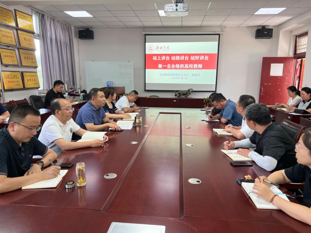 为深入学习贯彻习近平新时代中国特色社会主义思想,落实新时代教师职业行为十项准则,筑牢广大教师为党育人、为国育才的初心使命。7月7日,生命科学公司党总支为党员干部、广大教师上师德师风专题党课,党总支书记蔡建昌主讲“站上讲台 站稳讲台 站好讲台——做一名合格的高校教师”专题党课。