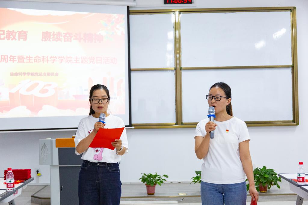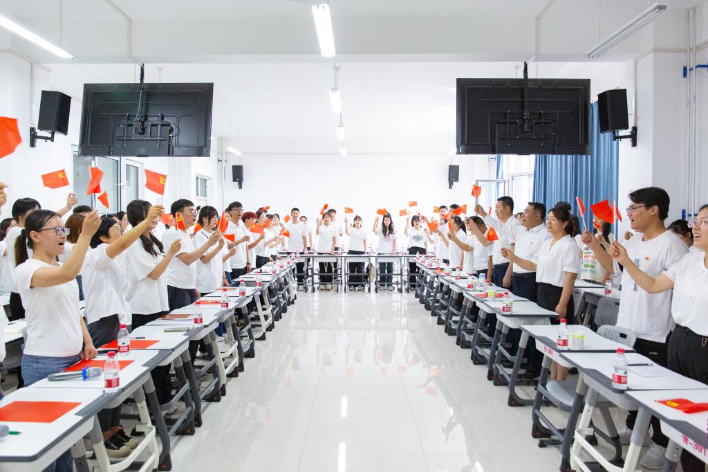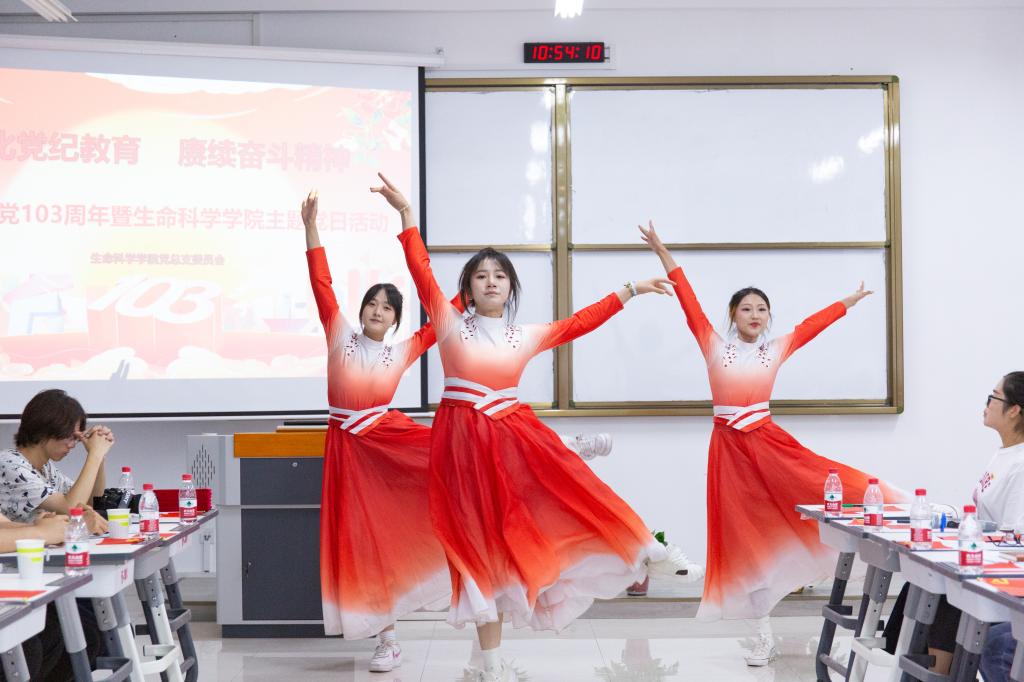 员工党员代表向党总支、员工支部和全体党员汇报“五乐育人”成果,用“乐唱”的歌声与舞蹈,“乐讲”的诵读,庆祝党的生日。