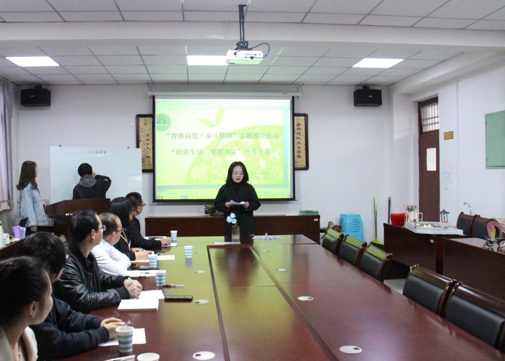 49日上午,公司在1S-203会议室举行了“青春向党、奋斗强国”主题团日活动—“创意生活、变废为宝”评选大赛。参加本次大赛的评委老师有公司党总支书记、副经理段义忠、党总支副书记樊丽及辅导员。在比赛的过程中,同学们团队协作,集思广益,充分发挥自己的想象,利用废品制作出精美的作品。