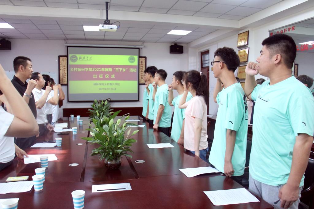活动中,毕台飞、董建刚、樊丽分别向两支乡村振兴实践团授旗,领队老师和全体团员进行活动宣誓。