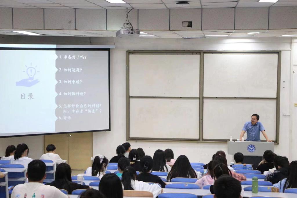 蓝贤勇表示,参加科创类大赛,一定要做好充足的准备。了解大赛规则,明确自己的目标。要做好科创,必不可少的是勤奋努力的心态,做好抗压的准备。其次,要学习实践思路,了解研究前沿。蓝贤勇以自己员工的实际经历为例,让参会员工理解做科研的不易与艰辛。接着从三个趣味故事引出不同学历阶段写论文的差异,从论文创作映射到科创大赛。说明准备大赛也要像写论文一样,要做到细心慎重,一丝不苟。