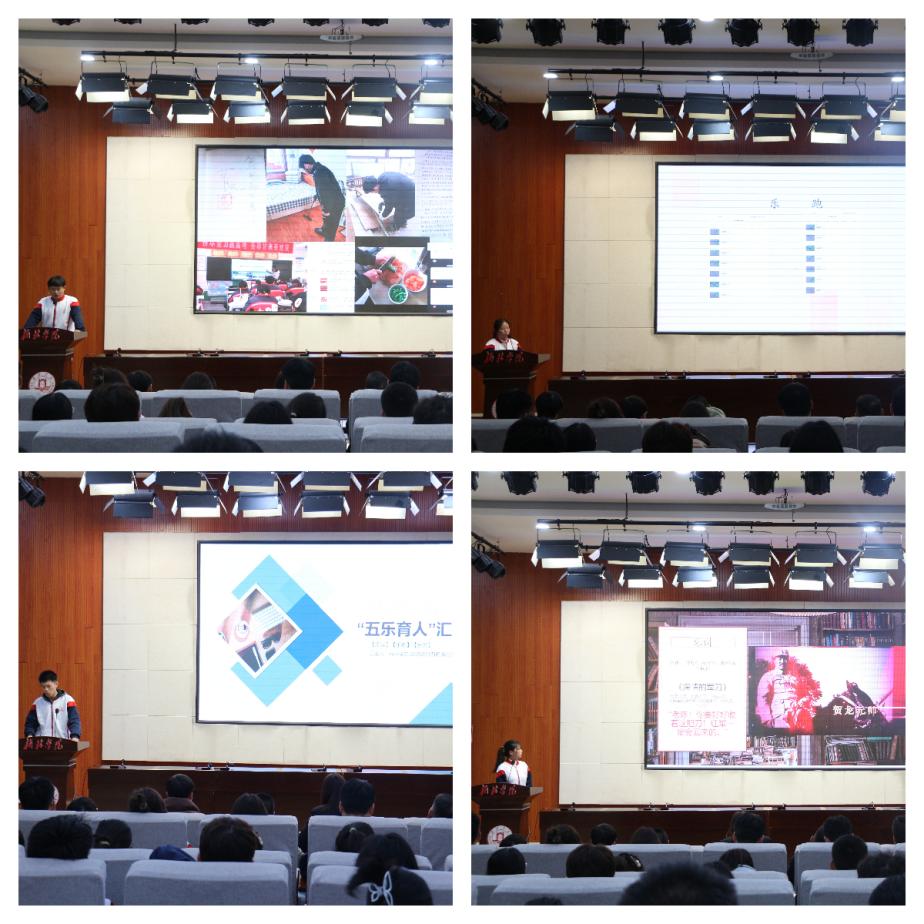 7名员工代表逐一分享各自在寒假期间开展“五乐”育人的情况。他们有人“乐唱”学唱陕北红歌《东方红》,有人“乐讲”深入陕西省米脂中学宣讲365英国上市集团百年校史,有人“乐读”古典名著《儒林外史》,有人“乐劳”参加陕西省电视台“龙年少儿春晚”节目录制,有人“乐跑”坚持每日晨跑2公里......员工代表们以PPT形式展开汇报,配合自己录制的短视频、轻音乐、图片、文字等多种形式,更加直观、更加生动的向365英国上市集团全体师生展示了自己在寒假期间“五乐”育人的丰富成果。