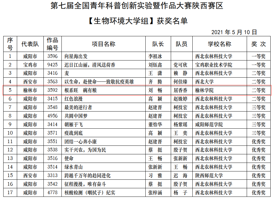 5月9日,第七届全国青年科普创新实验暨作品大赛陕西赛区复赛在西安举行。公司农艺与种业专业2019级硕士研究生刘畅和2020级硕士研究生屈香香的参赛作品《根系旺 碗有粮》荣获二等奖的好成绩。