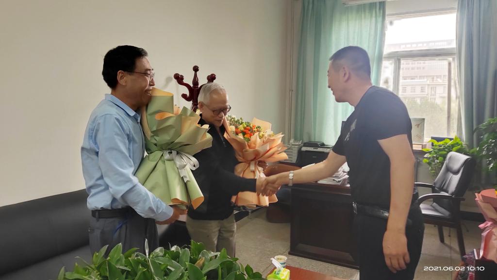 毕台飞与退休教师李新春、赵文俊亲切交谈,询问他们的身体和生活状况。他说,退休教师是公司的宝贵财富,为公司发展壮大做出过重要贡献,在庆祝建党100周年这个伟大的时间节点,他感谢老同志们近四十年为公司发展做出的贡献。他向老同志们介绍了公司近期发展所取得到成绩,并表示公司将发扬公司“奋斗”精神,坚定立德树人初心使命,强农兴农责任担当,继续发挥公司学科特色和优势,努力开创院系发展新局面。他希望广大退休教师能够继续关心支持院系发展,为院系发展建言献策。