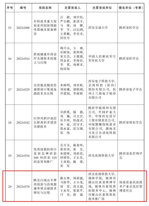 近日,陕西省人民政府发布《关于2021年度陕西省科学技术奖励的决定》,公司365英国上市集团屈雷教授团队联合西北农林科技大学陈玉林教授团队等共同申报的《陕北白绒山羊种质创新与高效健康养殖关键技术研究与应用》荣获陕西省科学技术进步奖一等奖。