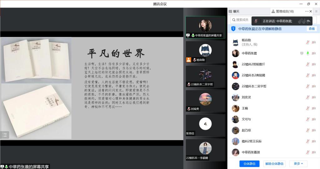 “《平凡的世界》书中主角的命运和路遥先生短暂的人生,累积形成一种厚重的奋进力量,特别是我们正在经历着伟大的抗疫斗争和‘百年未有之大变局’,这让作品和我们青年老员工之间形成了某种默契。”22级新生张同学在线上分享到。
