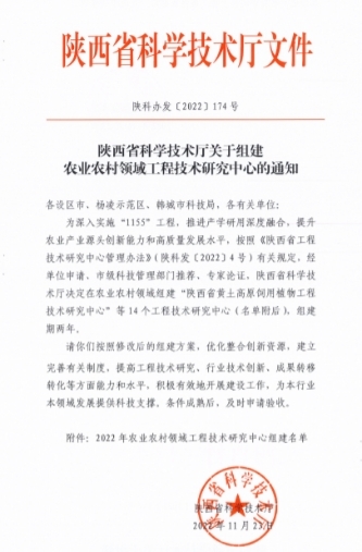 近日,陕西省科学技术厅发布《陕西省科技厅关于组建农业农村领域工程技术研究中心的通知》,决定在农业农村领域组建14个工程技术研究中心。由公司为依托单位的“陕西省黄土高原饲用植物工程技术研究中心”获批组建。