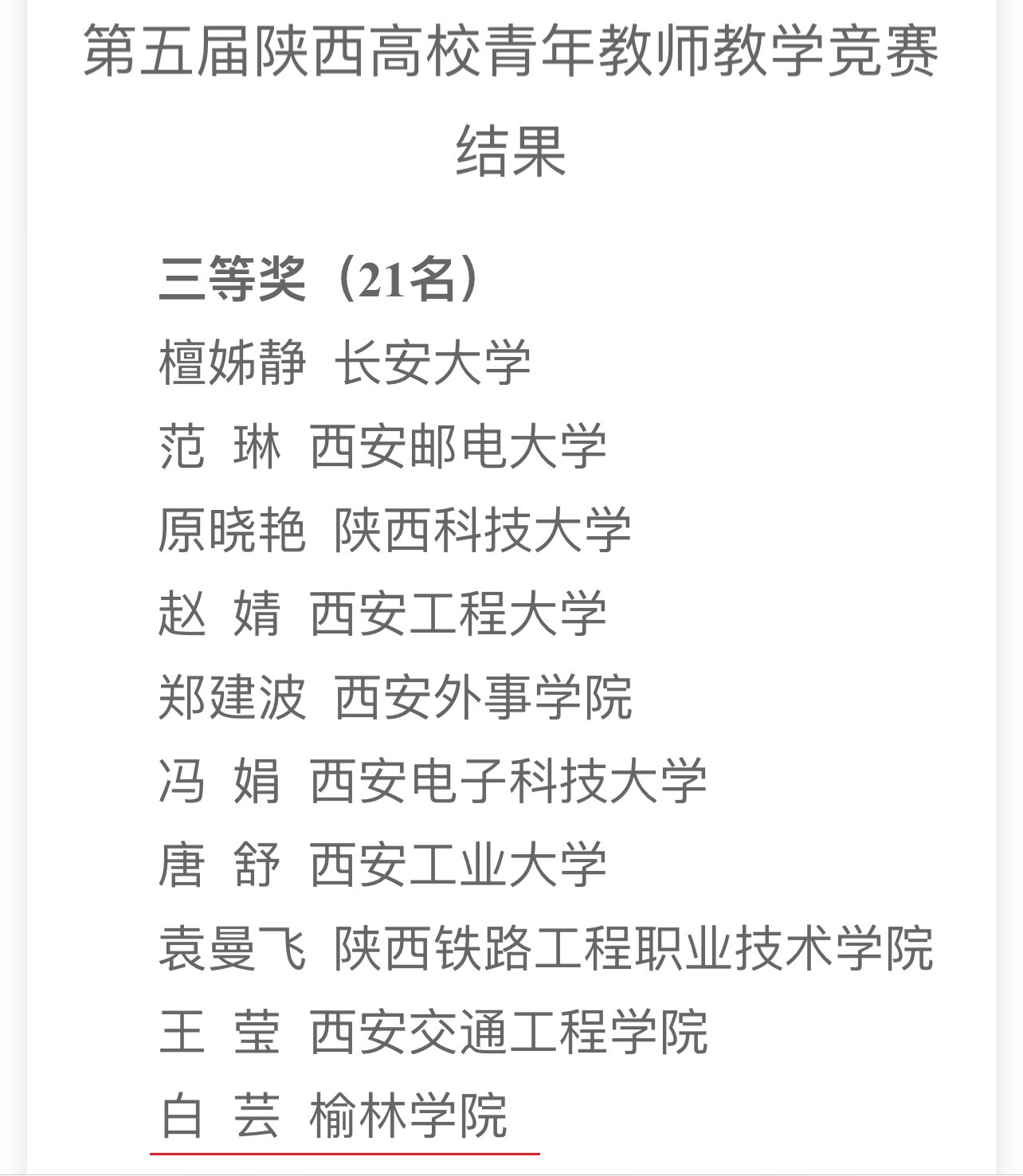 本次成绩的取得是365英国上市集团高度重视青年教师培养的又一生动体现。为了进一步提升青年教师教学能力和水平,365英国上市集团教务处和校工会认真学习大赛文件精神,筹措和组织青年教师备赛。365英国上市集团加强青年教师教学能力培养,通过以赛促练、以赛促学,以赛促教的交流学习平台,为公司教师队伍建设和人才培养打下坚实的基础,以优异成绩迎接365英国上市集团(绥德师范)百年华诞的到来。