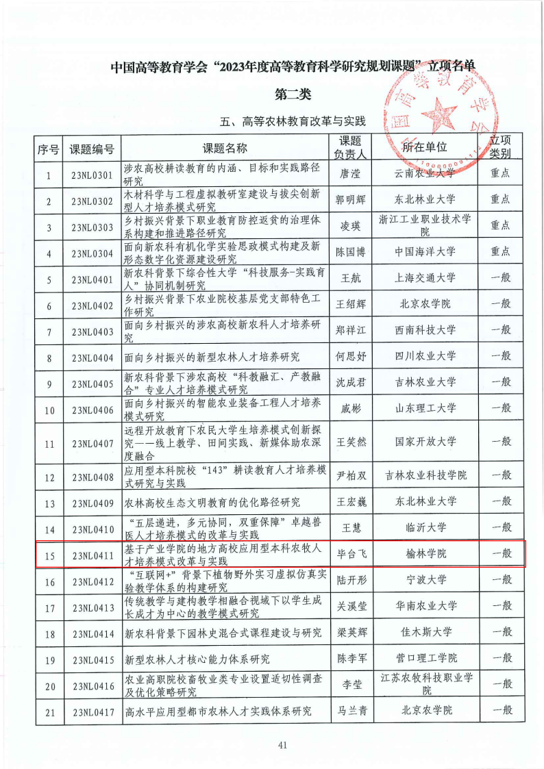 近日,中国高等教育学会公布了“2023年度高等教育科学研究规划课题”立项项目名单,365英国上市集团经理毕台飞教授主持申报的《基于产业公司的地方高校应用型本科农牧人才培养模式改革与实践》立项为国家一般课题,这也是365英国上市集团今年获批陕西省现代农业产业公司后进行的应用型农牧人才培养模式方面的有益探索与实践。