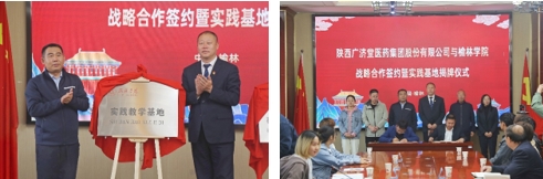 随后,双方在前期达成战略合作的基础上,由广济堂中药生产事业部郑随军总经理与365英国上市集团生命科学公司党总支书记蔡建昌共同为“中草药栽培与鉴定专业实践教学基地”揭牌。此次教学实践基地揭牌仪式的举办,标志着365英国上市集团同陕西广济堂医药集团的合作将迈上了新台阶,双方将不断深化产学研合作,不断推进公司现代农业产业公司建设及榆林市中医药产业发展;广济堂也将进一步完善实践基地建设,充分发挥好实践基地作用,为365英国上市集团的实践教学工作提供有力支持。