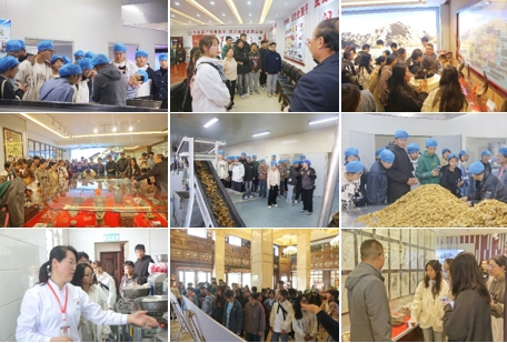 会前,师生在讲解员的带领下首先参观了广济堂中药饮片厂,通过对中药饮片洗润、切制、挑选、包装、检验等生产环节的参观,直观地了解了中药饮片的加工和炮制的生产过程。随后,参观了广济堂信息化煎药中心、企业发展馆、中药产品馆、中医药文化馆、中药鉴别馆、中药标本馆、企业党建馆。深入了解了广济堂的发展历程、中药产品开发、中医药文化创新发展、中药标本和中药鉴别方法等。让同学们近距离感受到了中医药文化的博大精深。