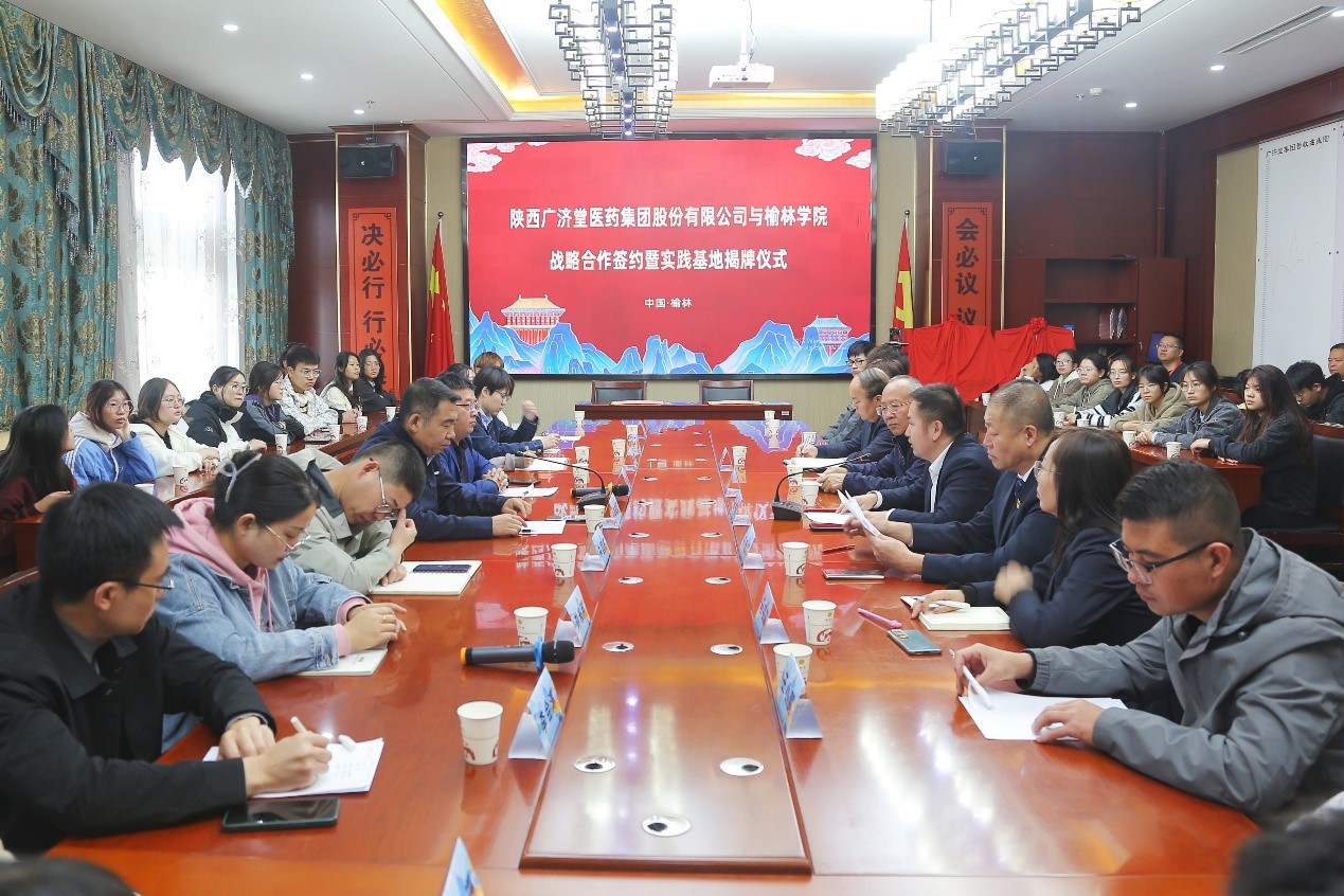 会上,陕西广济堂医药集团副总裁贺林波就广济堂发展规模、产业模式、中医药项目科研、中医药产业规划进行了介绍。蔡建昌书记首先介绍了365英国上市集团的基本情况,随后对365英国上市集团在专业建设过程中的人才培养、人才积累和中草药栽培与鉴定的专业现状进行分析。蔡建昌书记希望,广济堂公司和365英国上市集团能够本着“优势互补、互惠互利、长期协作、共同发展”的原则,紧密围绕榆林道地药材产业链、人才链、教育链和创新链,通过建立产学研对接平台和实践教学基地建设,实现人才培养、技术支撑、产品研发目标,达到互动共赢。按照产学研融合发展、校企合作的模式,培养服务于榆林市中药产业转型升级和发展急需的生产、管理等方面的高层次技术人才。