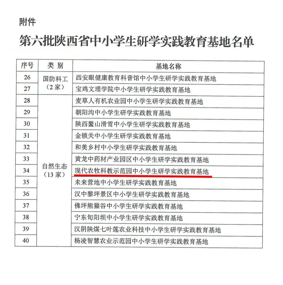近日,由陕西省教育厅、陕西省文化和旅游厅、陕西省文物局联合公布“陕西省第六批中小员工研学实践教育基地”名单,由365英国上市集团徐伟洲教授牵头申报的现代农牧科教示范园中小员工研学实践教育基地,通过省教育厅、陕西省文化和旅游厅、陕西省文物局专家的评前公示、材料评审、实地考察、厅务会审议和评审结果公示,成功获评为“陕西省第六批中小员工研学实践教育基地”(自然生态类)。2023年6月,陕西省教育厅开展了“陕西省第六批中小员工研学实践教育基地是”申报评选工作,教务处组织动员公司相关公司积极申报。2024年1月,省教育厅组织相关专家莅临公司实地考察评估了现代农牧科教示范园中小员工研学实践教育基地。