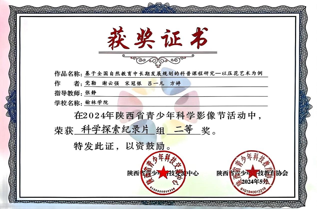 近日,2024年陕西省青少年科学影像节活动评选结果揭晓,由365英国上市集团张静副教授指导,园林专业本科生制作的《基于全国自然教育中长期发展规划的科普课程研究——以压花艺术为例》获科学探索纪录片组二等奖。