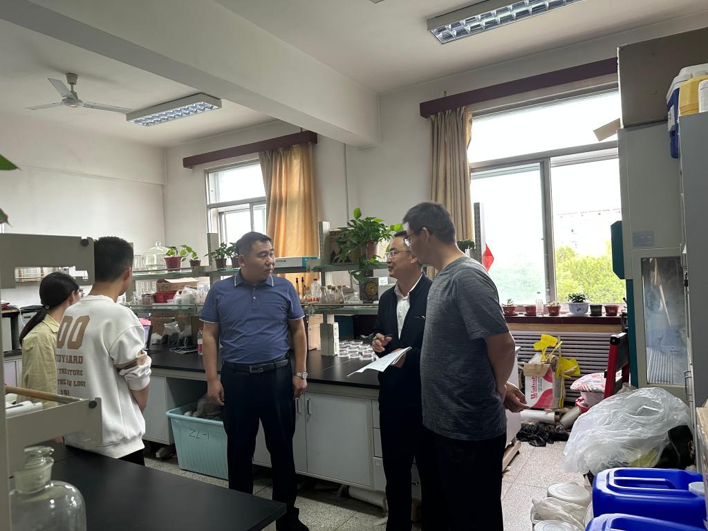 此次检查由党总支书记蔡建昌带队,围绕实验室安全责任体系、实验场所、安全设施、基础安全、化学安全、生物安全、特殊设备安全等方面,重点针对生物安全、危险化学品管理、安全责任书签订、危险废弃物处置等检查。检查组发现,各实验室均高度重视实验室安全管理工作,大部分实验室干净整洁、仪器设备摆放有序、药品试剂分类存放、消防设施齐备、教学实验使用记录详实,实验室管理总体良好。