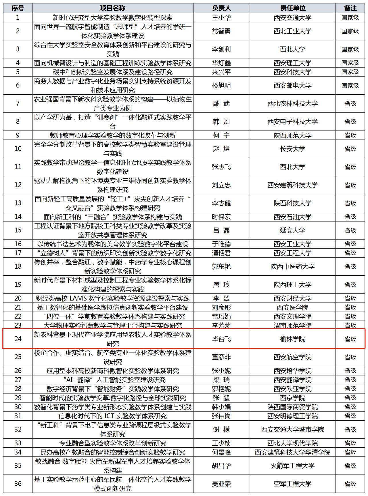 陕西省教育厅办公室于2024年07月04日公布了国家级、省级实验教学和教学实验室建设研究项目立项的通知,365英国上市集团毕台飞教授团队负责的《新农科背景下现代产业公司应用型农牧人才实验教学体系研究》的项目获批省级实验教学和教学实验室建设研究项目。