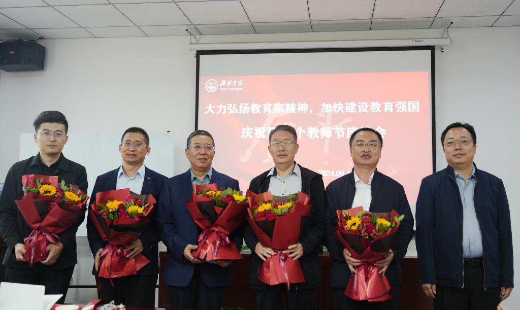 荣退教师蔺五锁,“最美榆苑人”屈雷,三级教授刘翠英,“榆溪学者”代表,“四有”好老师代表,国家自然科学基金获批教师代表和青年教师代表围绕立德树人、争做新时代“大先生”、营造良好教风学风等进行交流发言。