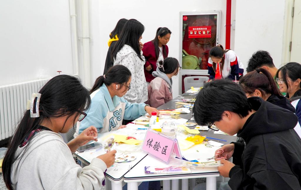 活动现场场面火爆,并设立压花作品体验区,广大师生热情参与压花作品制作,学习压花技艺,积极传承中华传统优秀文化。