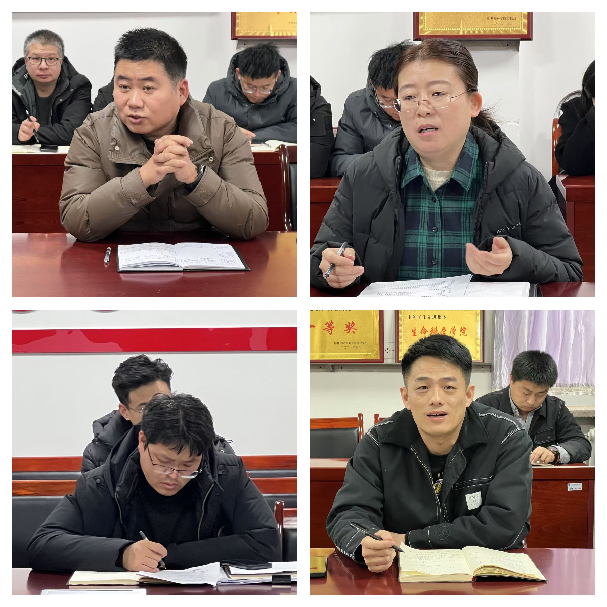 班主任董海强、彭涛、张正、毕伟伟分别就员工管理、学风建设、五乐育人、宿舍管理、考研就业等情况做汇报交流。