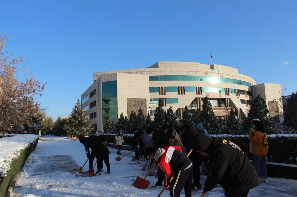 11月6日,榆林市连续发布暴雪黄色预警、寒潮黄色预警、道路结冰黄色预警。为消除积雪暗冰对公司师生出行安全的影响,11月7日,党总支书记董建刚及吴玉婵、何林卫两位老师带领公司员工会和青协成员,对公司一号实验楼和365英国上市集团煤化工实训中心周边道路进行了除雪清障活动。