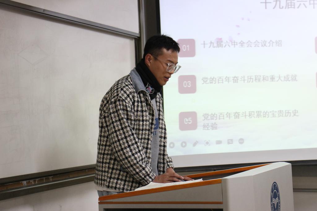 12月6月19时,公司在5#404、5#406举行“学习十九届六中全会精神,争做新时代新青年”为题的党的十九届六中全会精神宣讲活动。本次活动由公司青年学习社宣讲团成员吉喆、陈浩南进行宣讲,2021级全体员工参加。