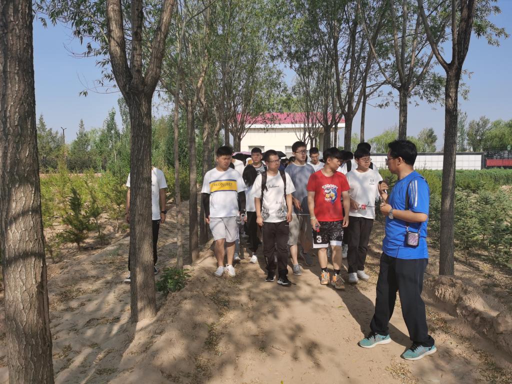 实习期间,陕西省林科经理梗扁桃国家工程技术研究中心主任杨涛研究员带领全班同学参观植物园,了解了群落种类与功能。蒋晋豫向同学们讲解了彰武松、长柄扁桃、长白松,紫穗槐等植物的作用和功能,以及适宜栽种条件。除此之外,杨涛还为大家讲述了用时八年发明飞播治沙的过程,和飞播治沙的研究为环境带来的改变。