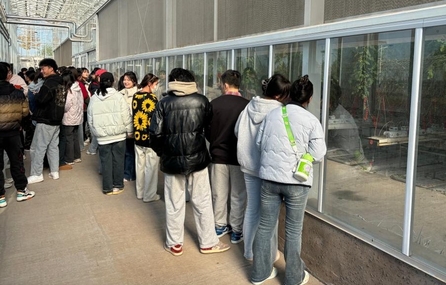 参观学习后,同学们来到了农业示范园附近的特色度假酒店,这里植物墙的装饰风格与二十四节气主题的设计赢得同学们的关注与好评。最后,同学们参观了南方水果观光棚,对这里生长着与北方气候“水火不容”的南方水果感到惊奇与钦佩。