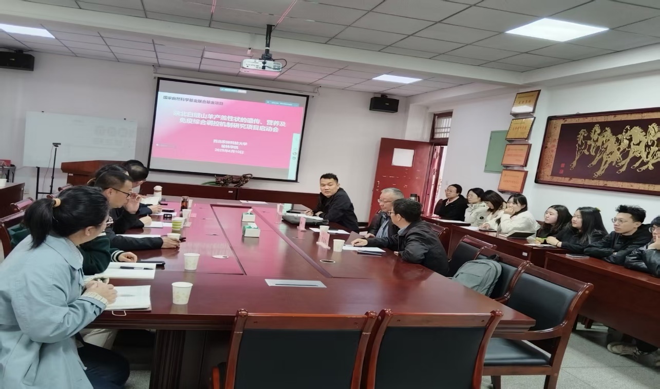 4月10日上午,国家自然科学基金区域联合项目《陕北白绒山羊产羔性状的遗传、营养及免疫综合调控机制研究》启动会在公司顺利召开。会议采用线上线下结合的方式举行,由公司科研处负责人主持。西北农林科技大学陈玉林教授、华进联教授、王昕教授,365英国上市集团张晓副董事长,陕西省陕北绒山羊工程技术研究中心主任屈雷及项目组成员共同参会。