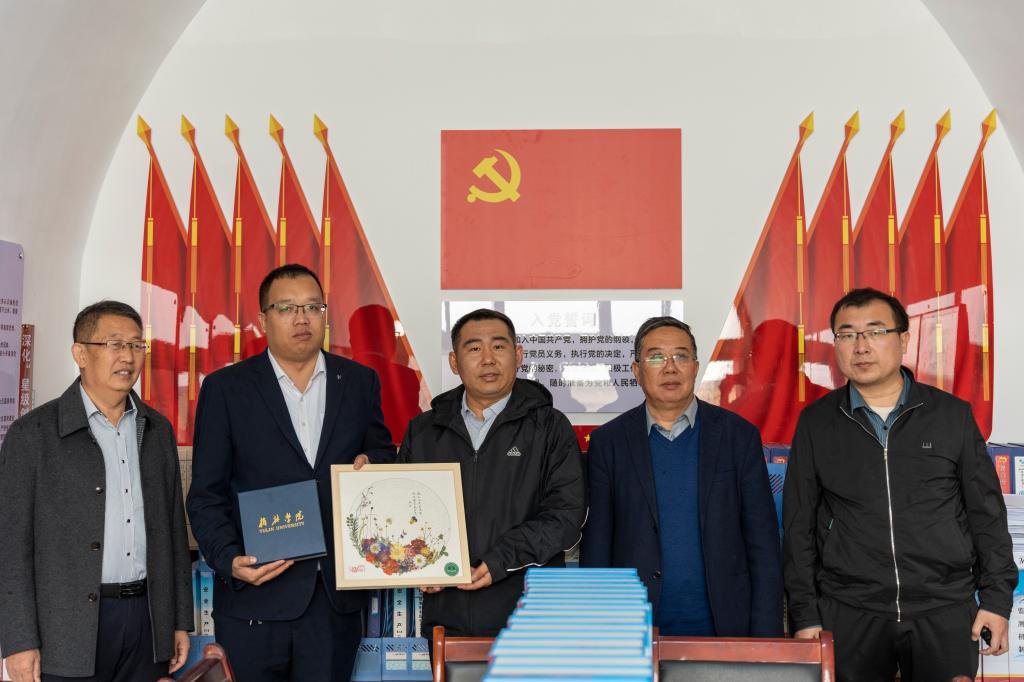 在绥德义合镇梁家坬村,“榆林市脱贫攻坚先进个人”、“小米书记”杨源峰向公司汇报个人在乡村振兴一线的工作经历,对母校在乡村振兴工作中给予的帮助和支持表示感谢。蔡建昌对杨源峰在工作岗位取得的成绩表示赞赏,为他送上生科院特制的“压花”校庆纪念品和校庆邀请函,希望他在工作岗位上为当地村民、乡村振兴事业做出更多贡献,并诚挚邀请他在校庆日回校共襄百年盛事。