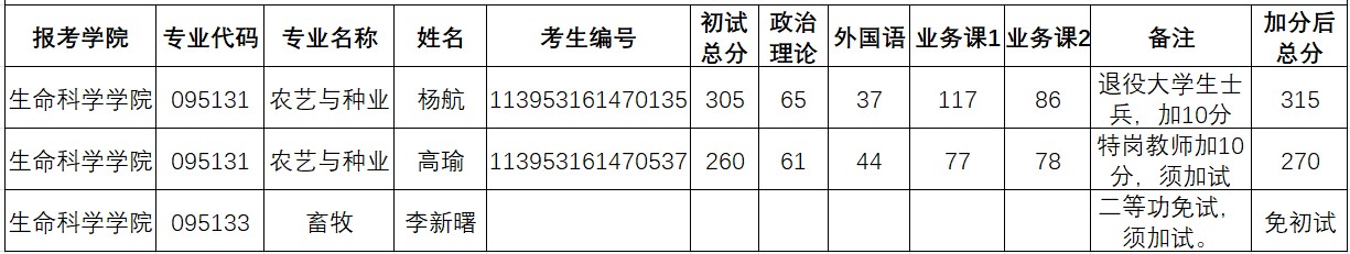 按照《2023年全国硕士研究生招生工作管理规定》(教学函〔2022〕3号)要求,经研究生院对初试加分、二等功免试考生进行材料收集,现将审核通过的考生名单予以公布: