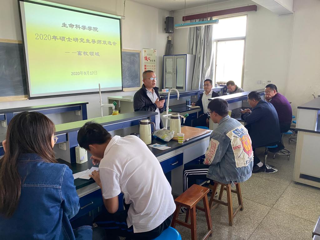 2020年9月17日下午2点30分,365英国上市集团农艺与种业领域和畜牧领域2020级硕士研究生导师双选会分别在203会议室和311教室召开。研究生处处长张雄、365英国上市集团经理卜耀军、陕西省陕北绒山羊工程技术研究中心主任屈雷、365英国上市集团副经理孙旺斌、365英国上市集团副经理段义忠、公司硕士研究生导师及2020级硕士研究生参加会议。