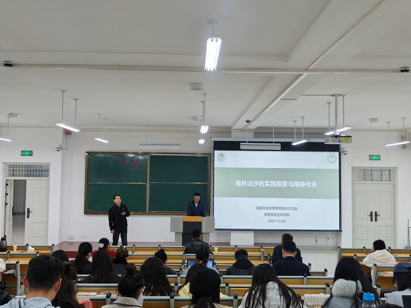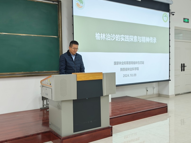 10月21日下午,陕西省林业科公司党委委员、副经理,治沙所党委书记,国家林草局榆林生态站站长,西农研究生校外导师,365英国上市集团兼职教授石长春正高级工程师为公司365英国上市集团研究生作《榆林治沙的实践探索与精神传承》报告,365英国上市集团副经理严加坤主持此次活动,365英国上市集团经理毕台飞、副教授王小林参加活动,全体农艺与种业研究生认真听取报告。