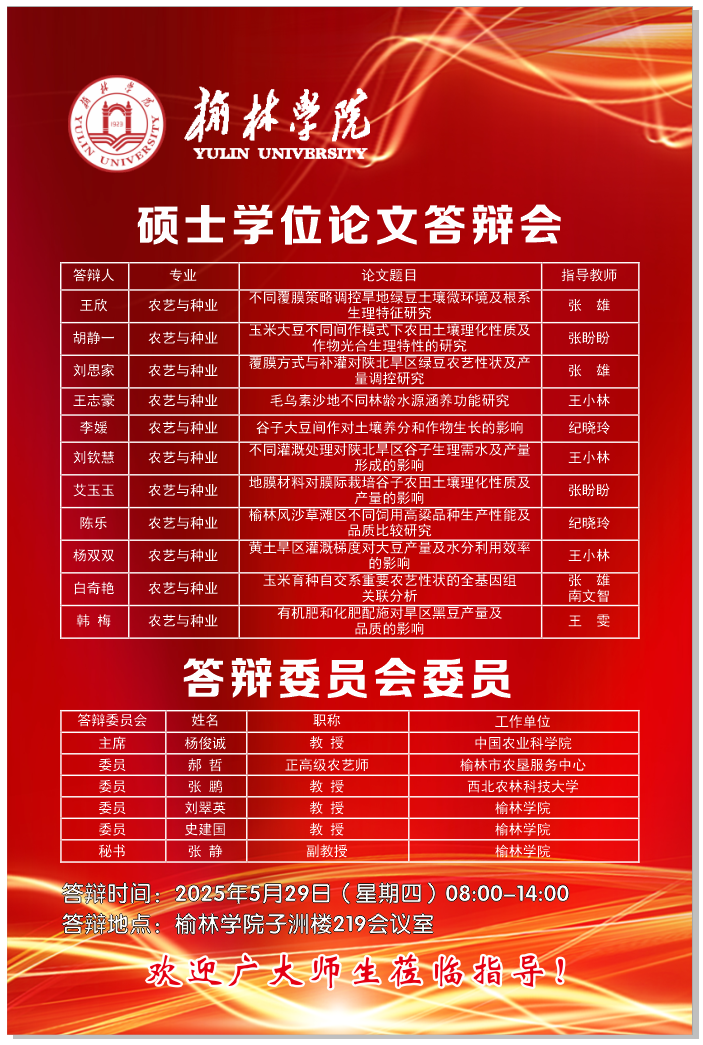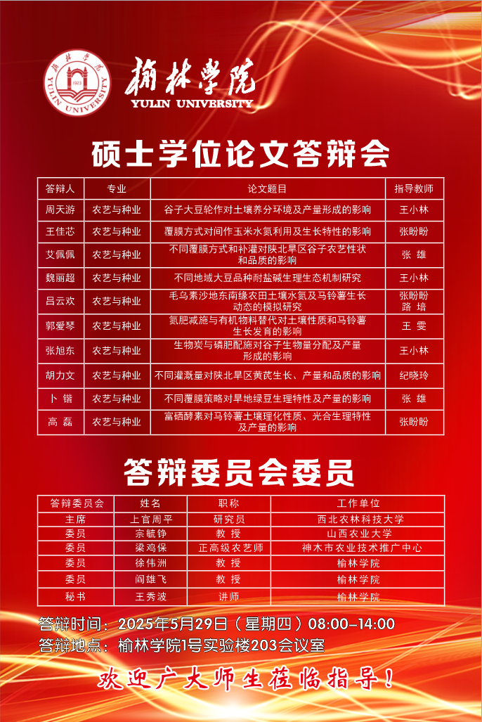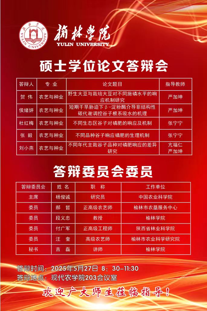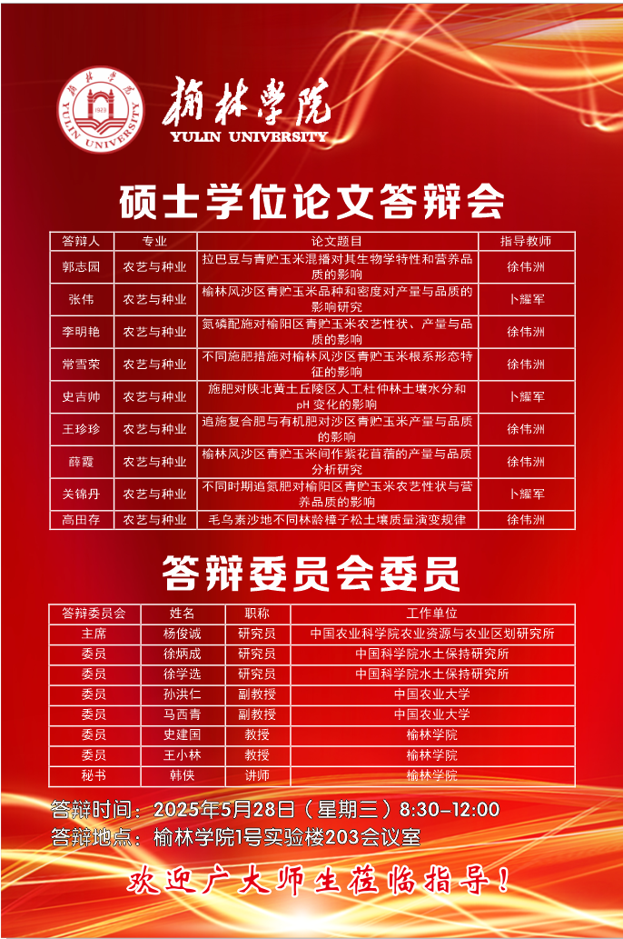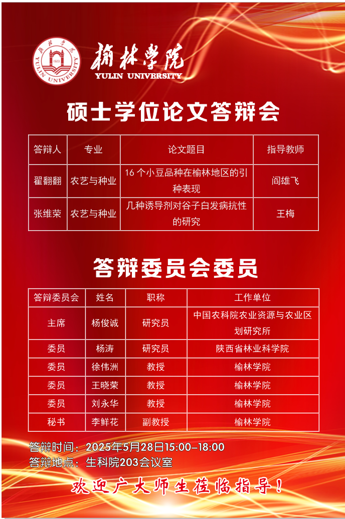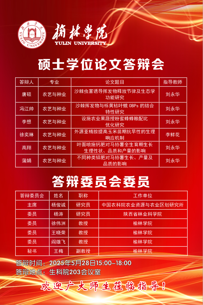 2025届农艺与种业专业硕士研究生学位论文答辩具体安排如下: